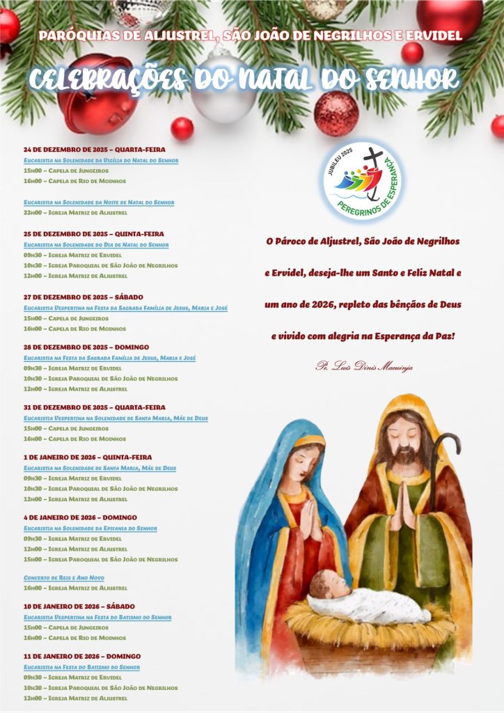 O Pároco de Aljustrel, São João de Negrilhos e Ervidel, deseja-lhe um Santo e Feliz Natal e um ano de 2026, repleto das bênçãos de Deus e vivido com alegria na Esperança da Paz!